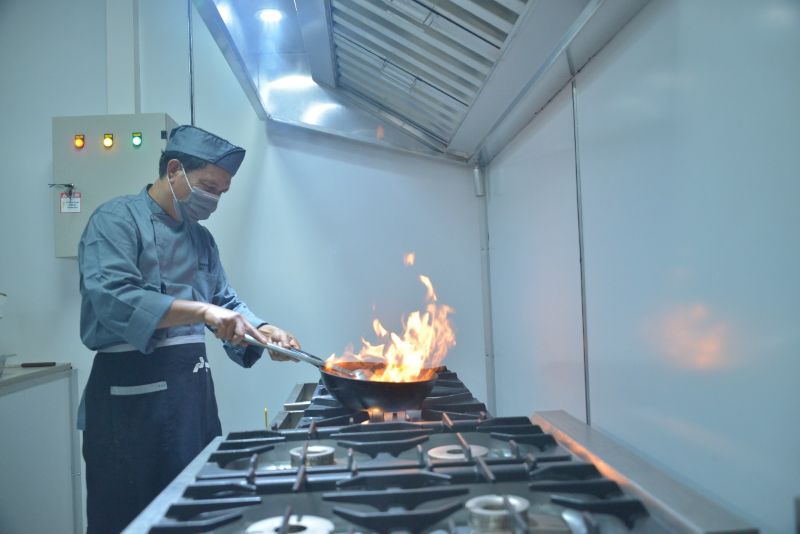 Sistem sirkulasi udara yang ditopang exhaust fan membantu menjaga kenyamanan kerja di dapur yang juga telah dilengkapi AC untuk memastikan suhu tetap stabil dan ruang kerja lebih sehat.