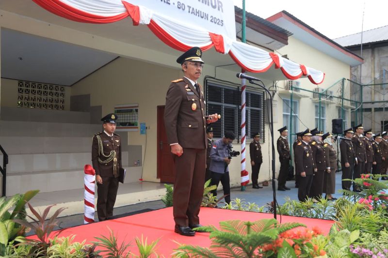 SAMARINDA – Memperingati hari lahir Kejaksaan RI ke 80 tahun 2025, Kejaksaan Tinggi Kalimantan Timur melaksanakan upacara memperingati hari lahir Kejaksaan RI ke 80 tahun 2025 dengan tema “Transformasi Kejaksaan Menuju Indonesia Maju” di lapangan tennis Kantor Kejati Kaltim Jalan Bung Tomo Samarinda Seberang, Selasa (2/9/2025).